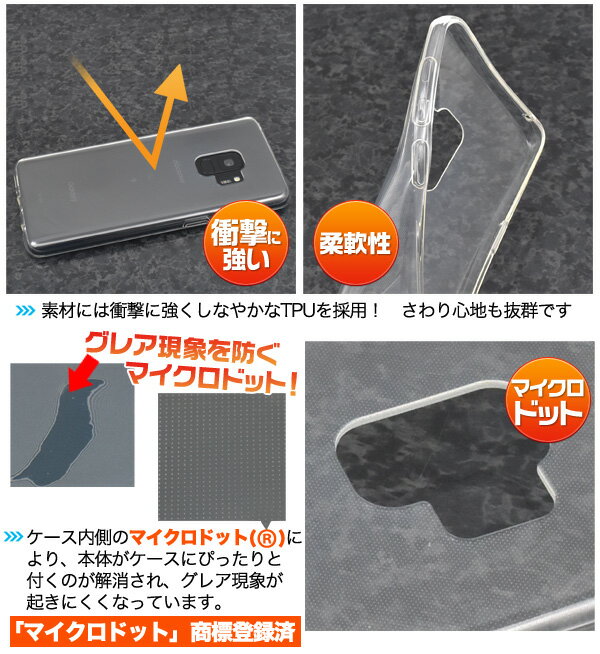 しなやかで衝撃に強い!Galaxy S9 SC-02K/SCV38用マイクロドット ソフトクリアケース シンプルな透明のマイクロドット ソフトクリアケース 素材は適度な硬さと弾力性をあわせ持つTPUを採用。